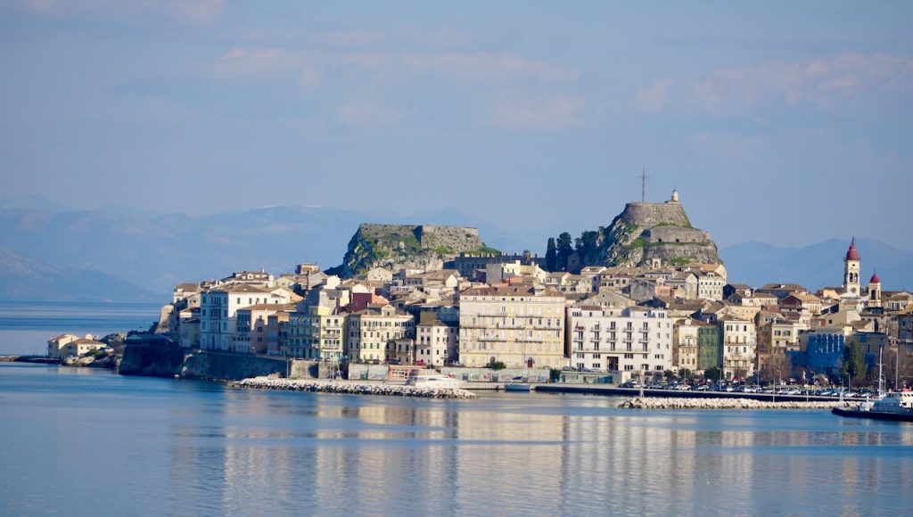 Corfu, Greece, is located offshore from mainland Greece at Greece’s northwest corner, offshore from Albania, which has a turbulent history with Greece.  Corfu is proud to be Greece’s greenest island, in terms of climate.